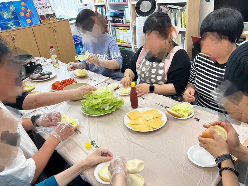 패티도 굽고 양상추도 다듬고 토마토도 썰고 그랬습니다.